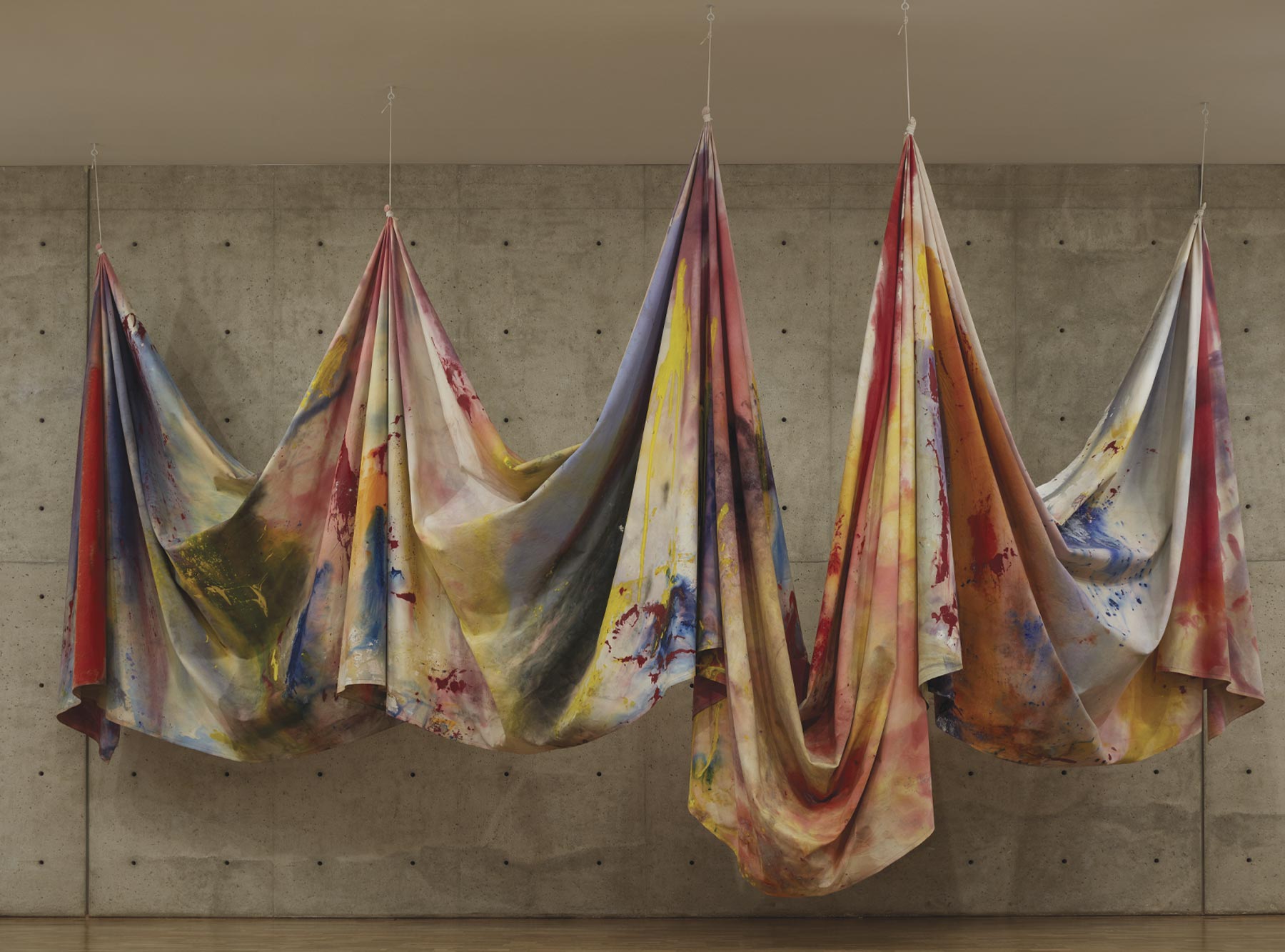 Sam Gilliam was one of the most influential and innovative artists of his generation. This early draped canvas painting is from a series the artist began in 1968 that came to define his career. Gilliam’s large unstretched canvases suspended from the ceiling pushed the limits of painting beyond the frame. Reflecting on the series, he said, “Paint and surface took on an added, third-dimensional reality. Now the canvas was not only the means to, but a primary part of, the object.” Watch a video of the work being installed here.