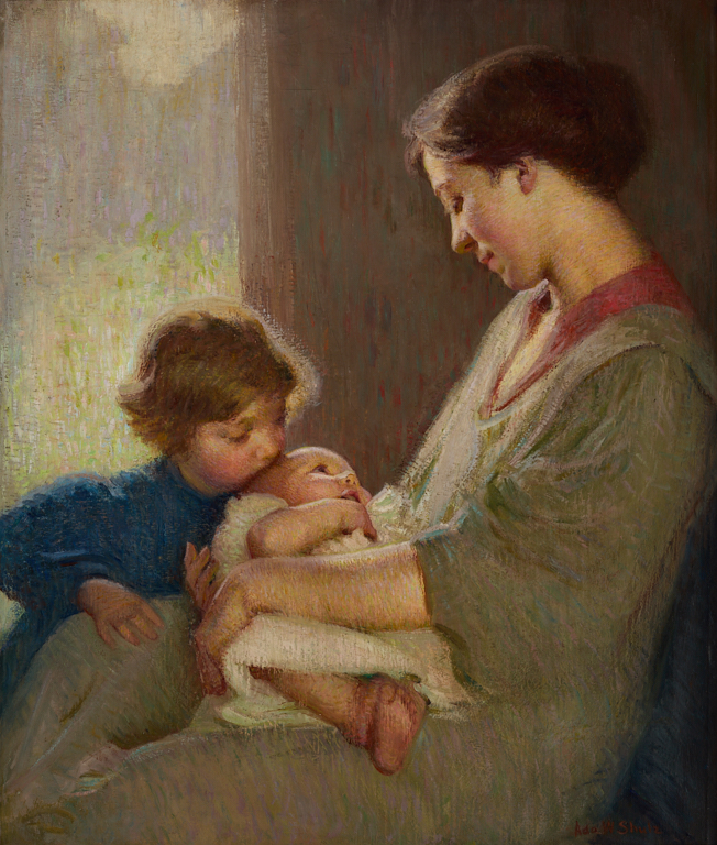 Ada Walter Shulz, Motherhood (The Kiss), before 1914. Oil on canvas. 33 × 28 in. (83.82 × 71.12 cm). Gift of Wisconsin Federation of Women’s Clubs, 5th District M1919.4. Photo by John R. Glembin